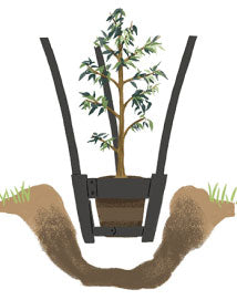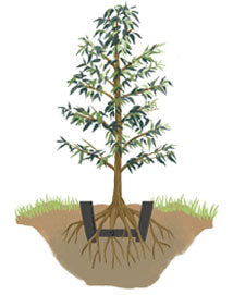 This flexing of the tree results in greater strength into the roots and trunk, better root system growth, and more trunk strength after planting.