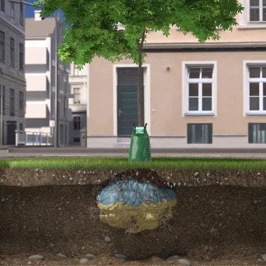 Therefore, during this period, the water source (watering bag) should be mounted directly above the root ball on the tree trunk to successfully navigate this critical phase.